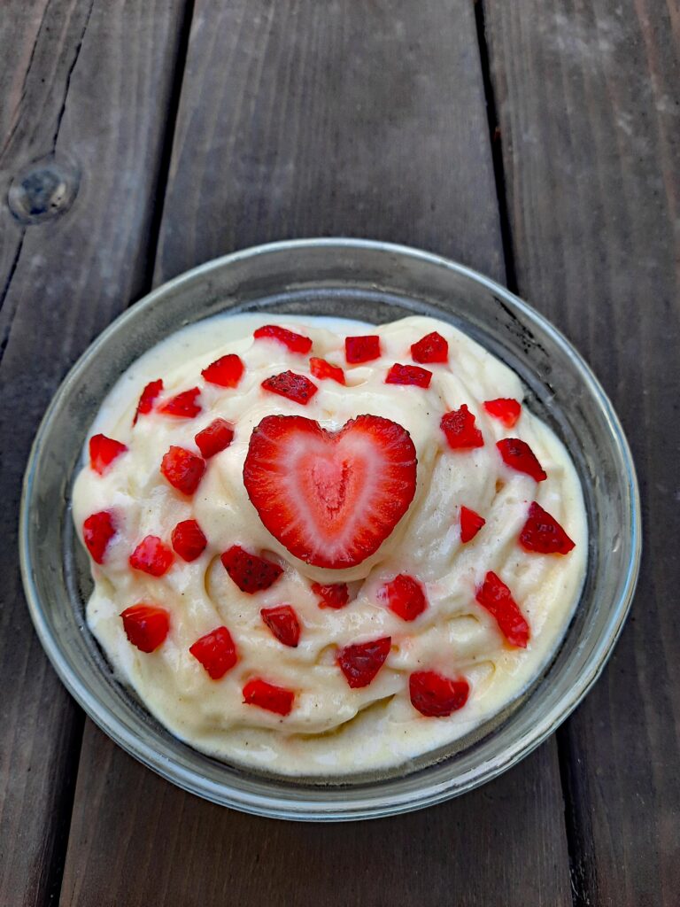 Here is one of our favorite dessert recipes! It doesn’t require extensive preparation and we can make it in less than 15 minutes. This is the blueberry version of this recipe. Other versions are coming soon!