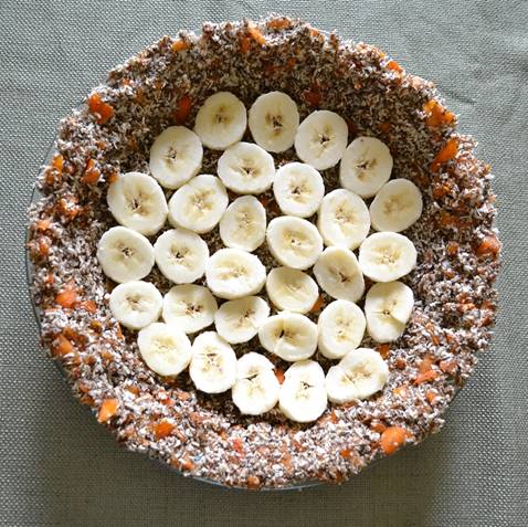 Place the remaining 4 banana sections on top of the banana-date-walnut mixture: