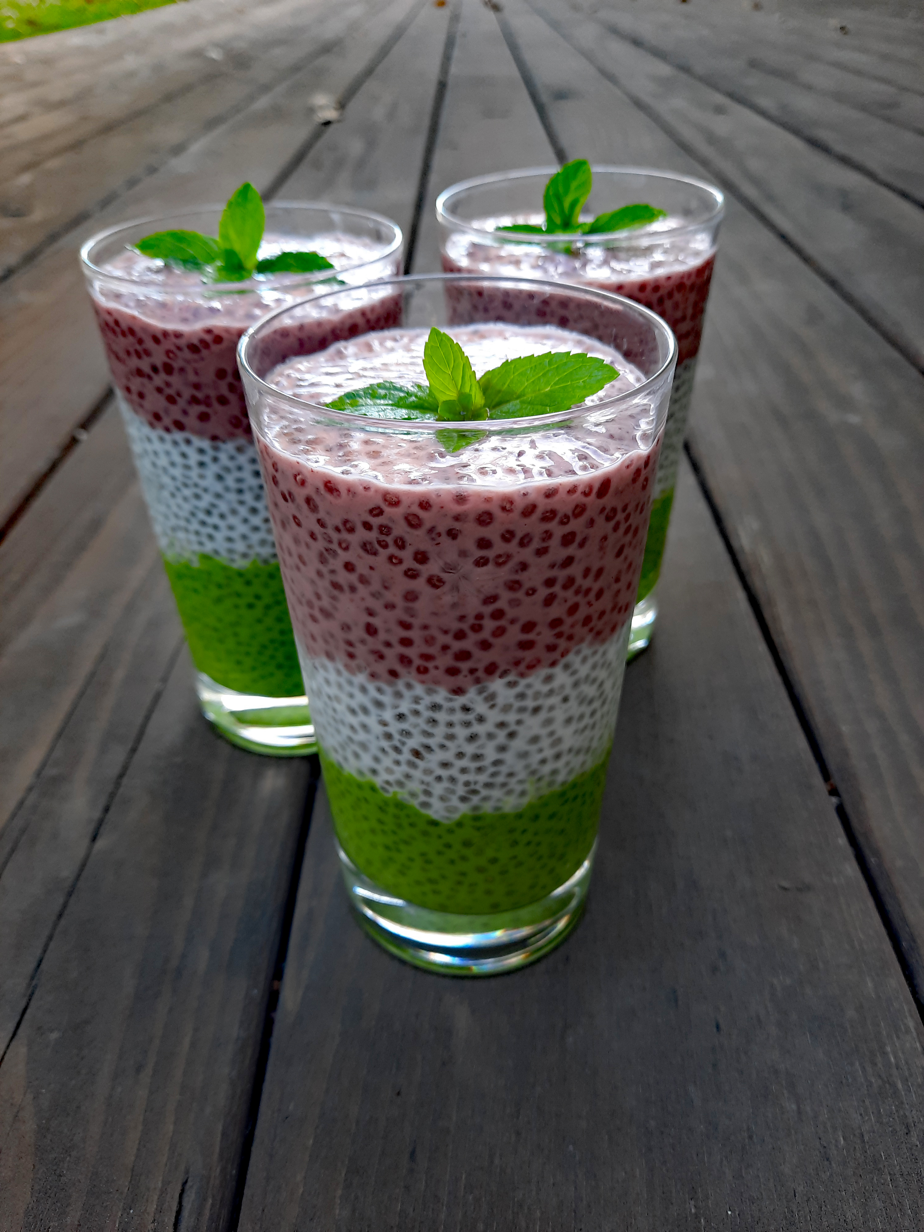 We all know that standard holiday fare, especially desserts, can easily contain a notable amount of long-chain saturated fats and omega 6 fats. But what if desert could be rich in omega 3 fats? Here’s a holiday version of chia pudding – with a cherry mint flavor and holiday colors: