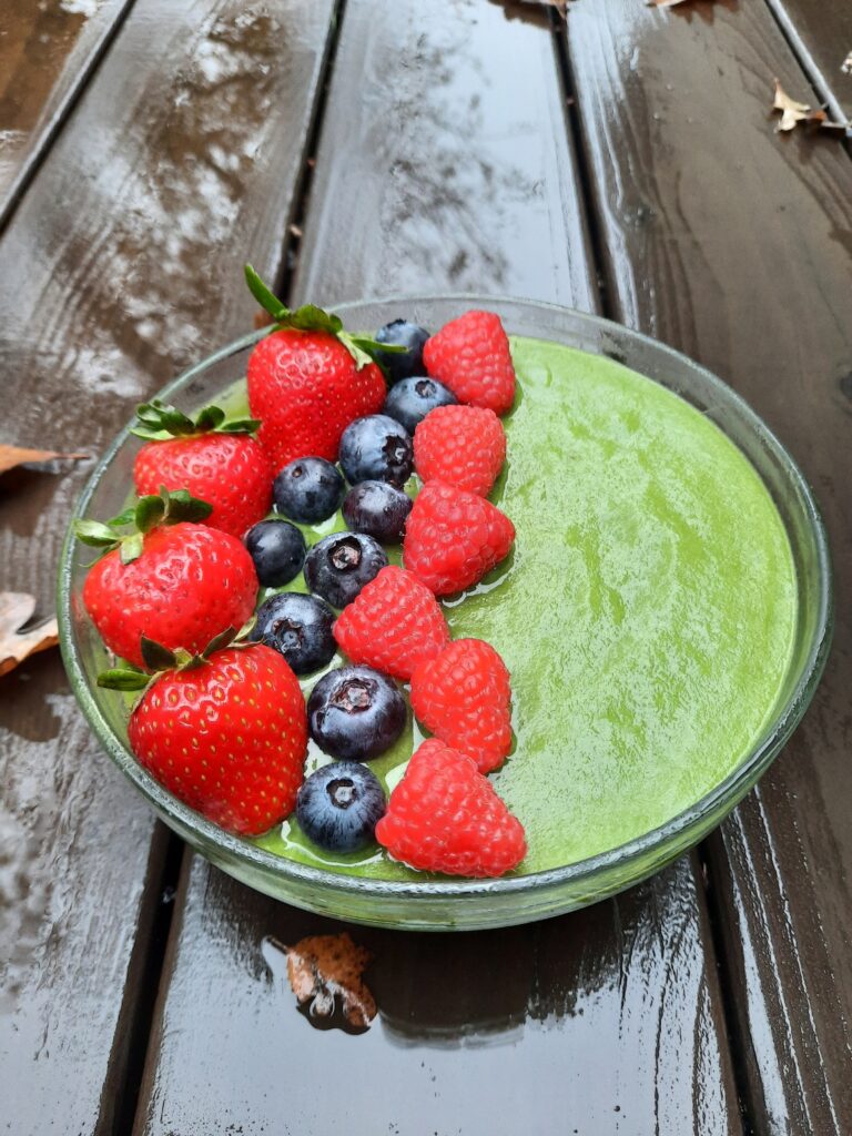 We’ve found smoothies to be a super easy and quick way to enjoy fruit and leafy greens. We mostly enjoy eating our fruit non-blended, but smoothies are one of my go-to breakfasts when I have a busy day ahead of me and find them to be especially filling for hours with the addition of leafy greens.